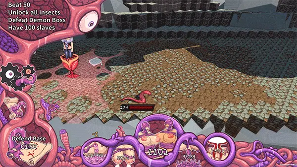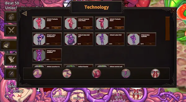 总共会有五个科技树可供升级,触手/史莱姆/植物/昆虫/恶魔